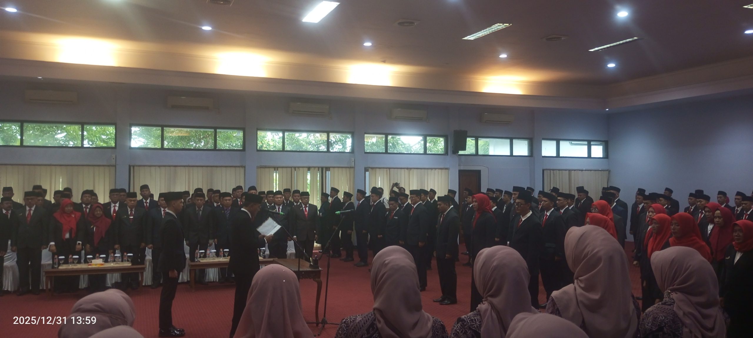 Ciamis.Peristiwajabar.co.id – Menutup akhir tahun 2025, Bupati Ciamis Herdiat Sunarya resmi melantik, mengambil sumpah jabatan, dan mengukuhkan 120 pejabat di lingkungan Pemerintah Kabupaten Ciamis. Pelantikan ini menjadi momentum evaluasi sekaligus penguatan kinerja aparatur sipil negara (ASN).