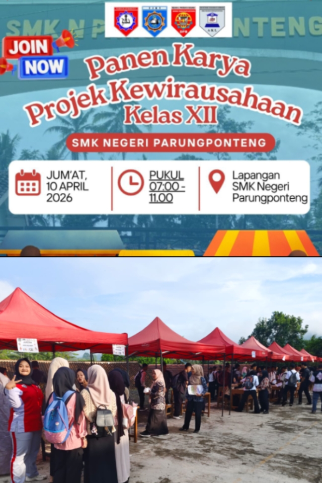 Tasikmalaya. Peristiwajabar.co.id – Suasana semarak dan penuh antusiasme mewarnai halaman SMK Negeri Parungponteng, Kecamatan Parungponteng, Kabupaten Tasikmalaya, pada Jumat (10/4/2026). Sekolah vokasi tersebut sukses menggelar kegiatan bertajuk “Panen Karya Projek Kewirausahaan Kelas XII” sebagai wujud nyata kreativitas sekaligus kesiapan siswa menghadapi dunia usaha.